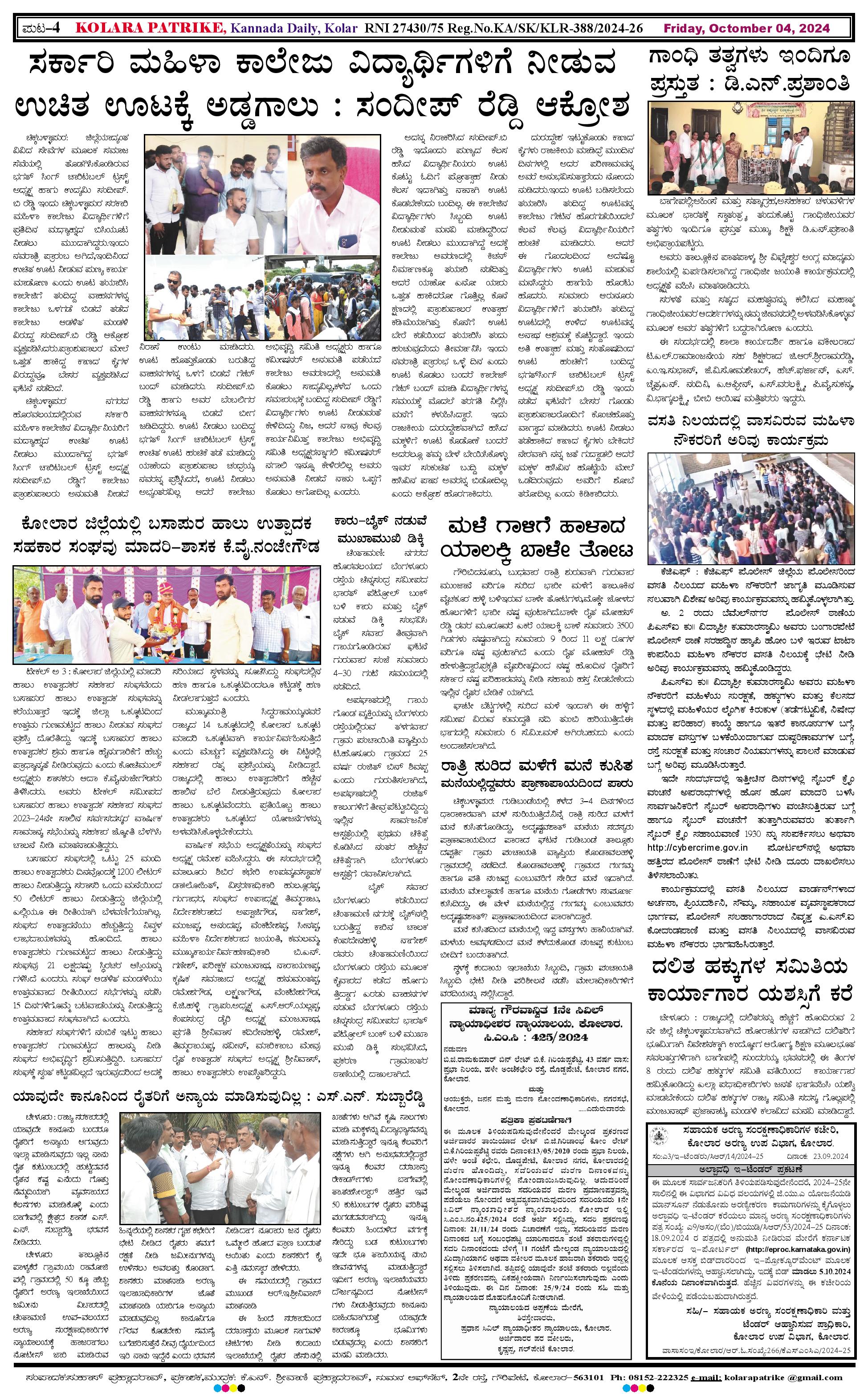 04 ಅಕ್ಟೋಬರ್ 2024 Page: 4 October 04, 2024 << First << 4 >> Last >> Page 1Page 2Page 3Page 4 × 04 ಅಕ್ಟೋಬರ್ 2024 page-1page-2page-3page-4 << First << 4 >> Last >> page-1page-2page-3page-4 page-4