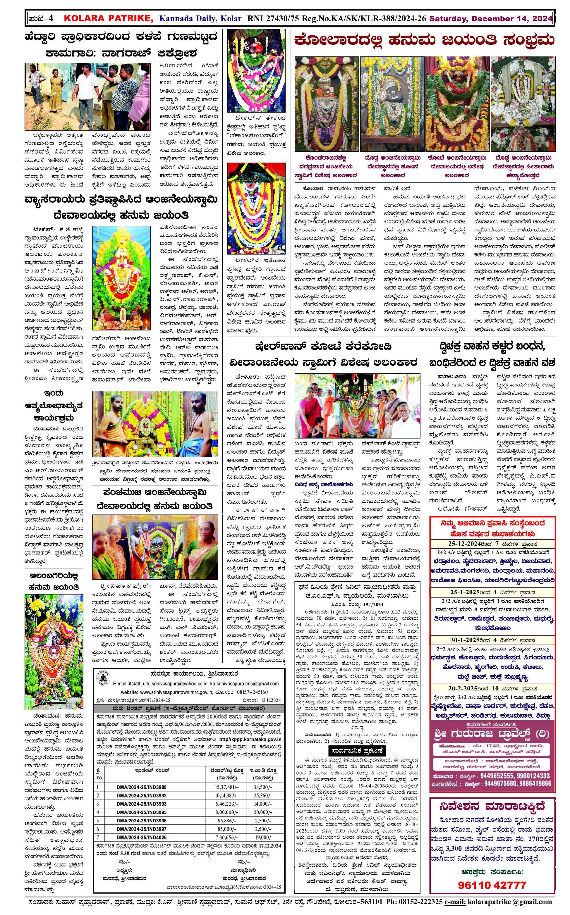 14 ಡಿಸೆಂಬರ್ 2024 Page: 4 December 14, 2024 << First << 4 >> Last >> Page 1Page 2Page 3Page 4 × 14 ಡಿಸೆಂಬರ್ 2024 page-1page-2page-3page-4 << First << 4 >> Last >> page-1page-2page-3page-4 page-4