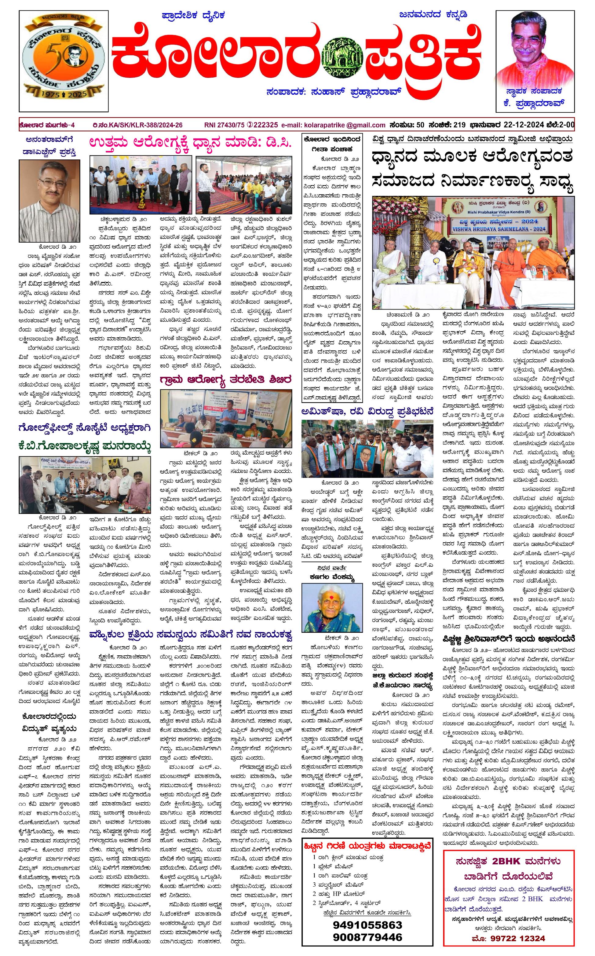 22 ಡಿಸೆಂಬರ್ 2024 December 22, 2024 << First << 1 >> Last >> Page 1Page 2Page 3Page 4 × 22 ಡಿಸೆಂಬರ್ 2024 page-1page-2page-3page-4 << First << 1 >> Last >> page-1page-2page-3page-4 page-1