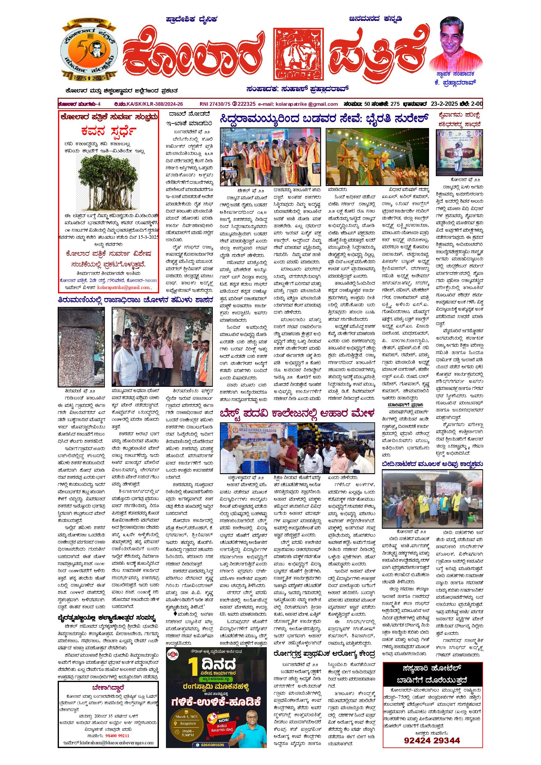 23 ಫೆಬ್ರುವರಿ 2025 February 23, 2025 << First << 1 >> Last >> Page 1Page 2Page 3Page 4 × 23 ಫೆಬ್ರುವರಿ 2025 page-1page-2page-3page-4 << First << 1 >> Last >> page-1page-2page-3page-4 page-1