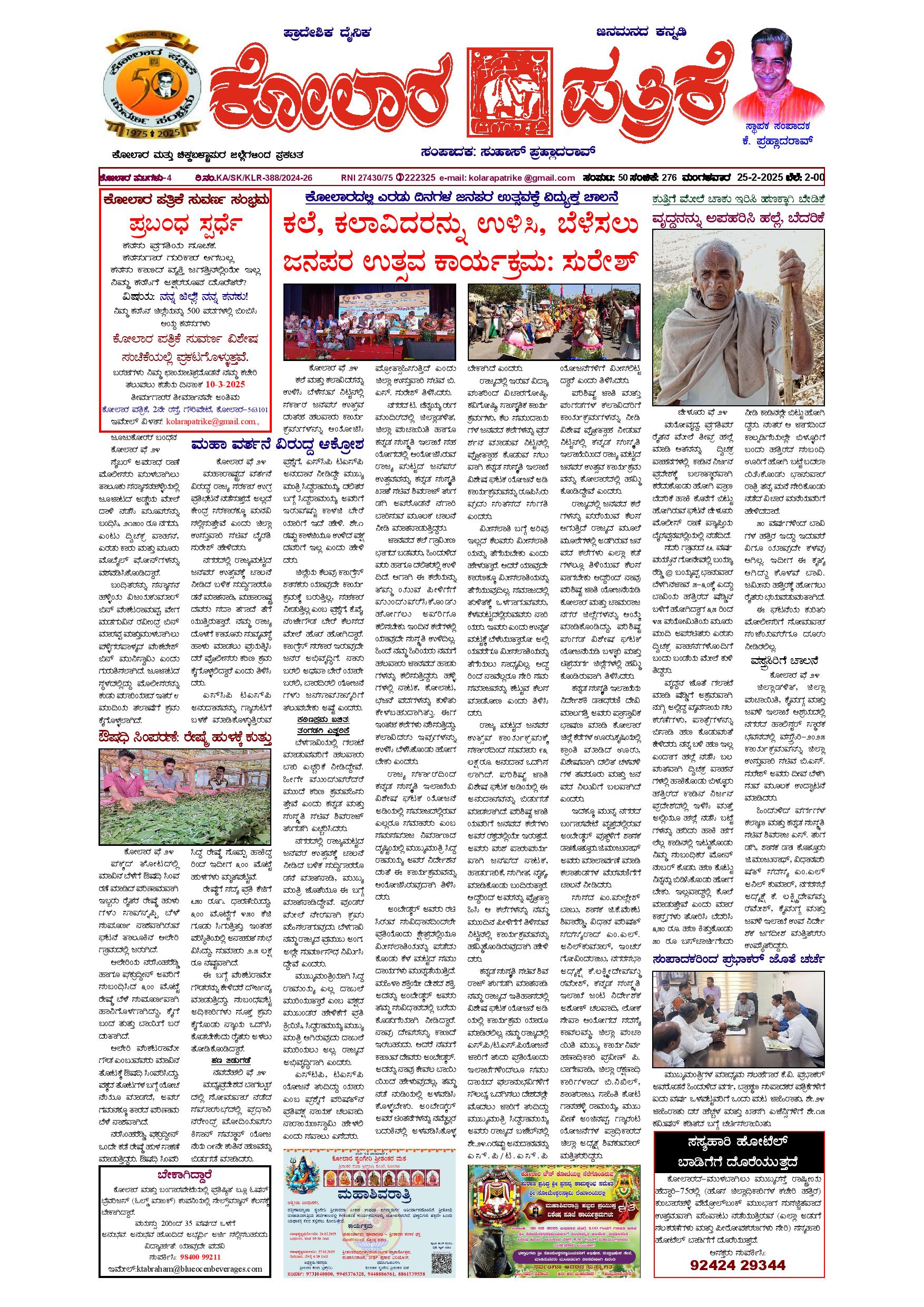 25 ಫೆಬ್ರುವರಿ 2025 February 25, 2025 << First << 1 >> Last >> Page 1Page 2Page 3Page 4 × 25 ಫೆಬ್ರುವರಿ 2025 page-1page-2page-3page-4 << First << 1 >> Last >> page-1page-2page-3page-4 page-1