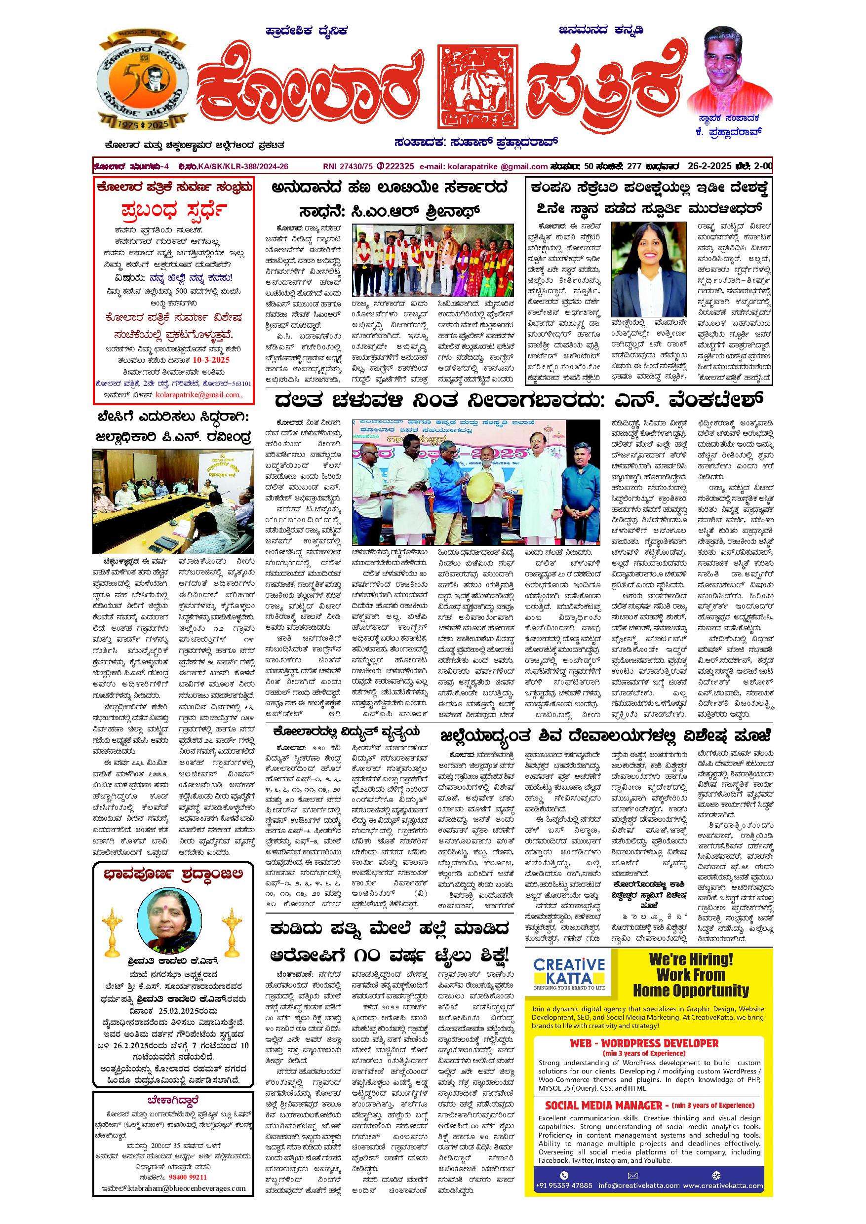 26 ಫೆಬ್ರುವರಿ 2025 February 26, 2025 << First << 1 >> Last >> Page 1Page 2Page 3Page 4 × 26 ಫೆಬ್ರುವರಿ 2025 page-1page-2page-3page-4 << First << 1 >> Last >> page-1page-2page-3page-4 page-1
