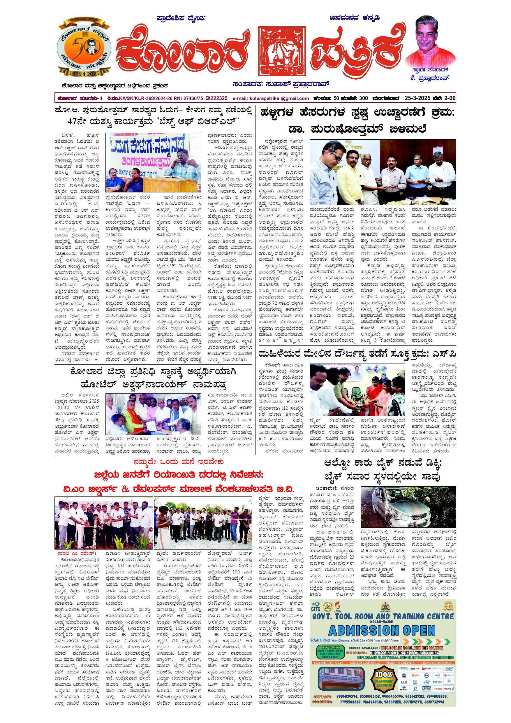 25 ಮಾರ್ಚ್ 2025 March 25, 2025 << First << 1 >> Last >> Page 1Page 2Page 3Page 4 × 25 ಮಾರ್ಚ್ 2025 page-1page-2page-3page-4 << First << 1 >> Last >> page-1page-2page-3page-4 page-1