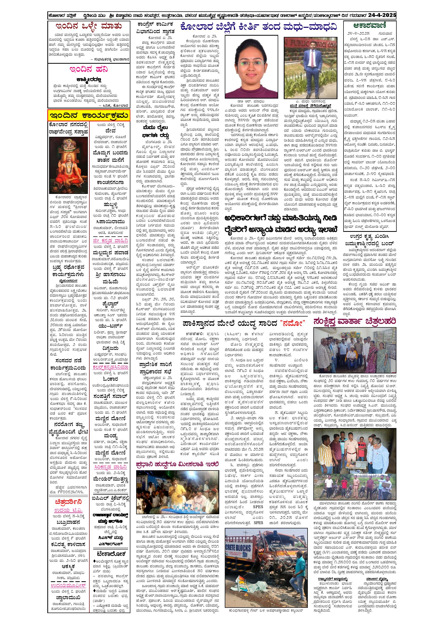 24 ಏಪ್ರಿಲ್ 2025 Page: 2 April 24, 2025 << First << 2 >> Last >> Page 1Page 2Page 3Page 4 × 24 ಏಪ್ರಿಲ್ 2025 page-1page-2page-3page-4 << First << 2 >> Last >> page-1page-2page-3page-4 page-2