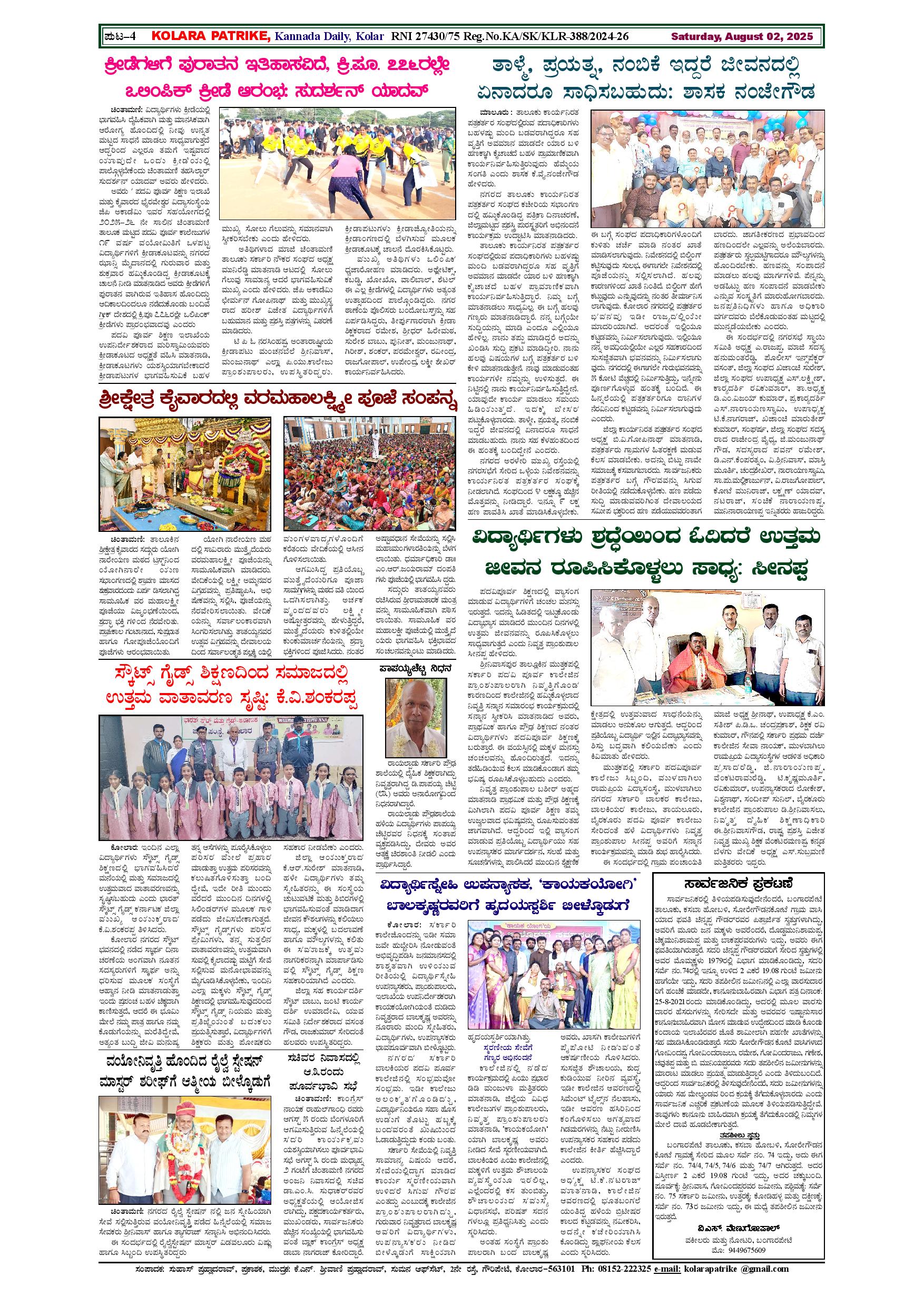 02 ಆಗಸ್ಟ್ 2025 Page: 4 August 02, 2025 << First << 4 >> Last >> Page 1Page 2Page 3Page 4 × 02 ಆಗಸ್ಟ್ 2025 page-1page-2page-3page-4 << First << 4 >> Last >> page-1page-2page-3page-4 page-4