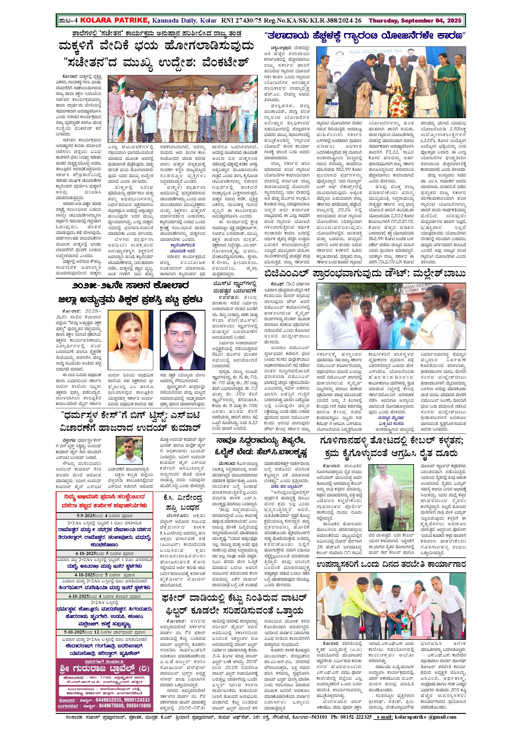04 ಸೆಪ್ಟೆಂಬರ್ 2025 Page: 4 September 04, 2025 << First << 4 >> Last >> Page 1Page 2Page 3Page 4 × 04 ಸೆಪ್ಟೆಂಬರ್ 2025 page-1page-2page-3page-4 << First << 4 >> Last >> page-1page-2page-3page-4 page-4