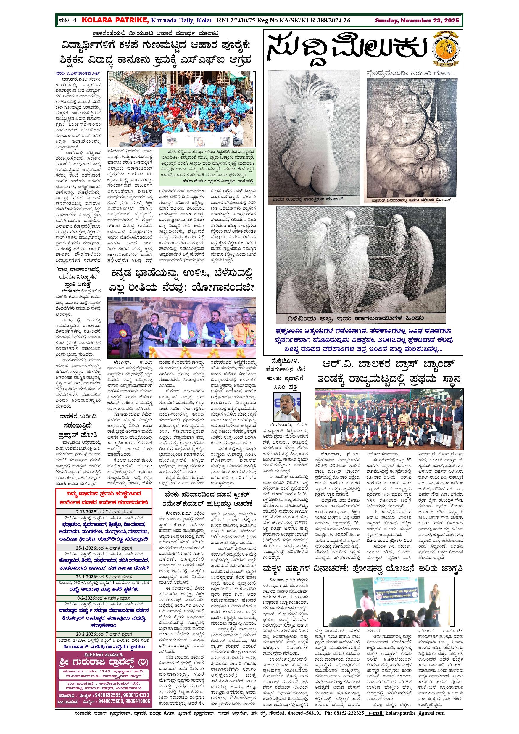 23 ನವೆಂಬರ್ 2025 Page: 4 November 23, 2025 << First << 4 >> Last >> Page 1Page 2Page 3Page 4 × 23 ನವೆಂಬರ್ 2025 page-1page-2page-3page-4 << First << 4 >> Last >> page-1page-2page-3page-4 page-4