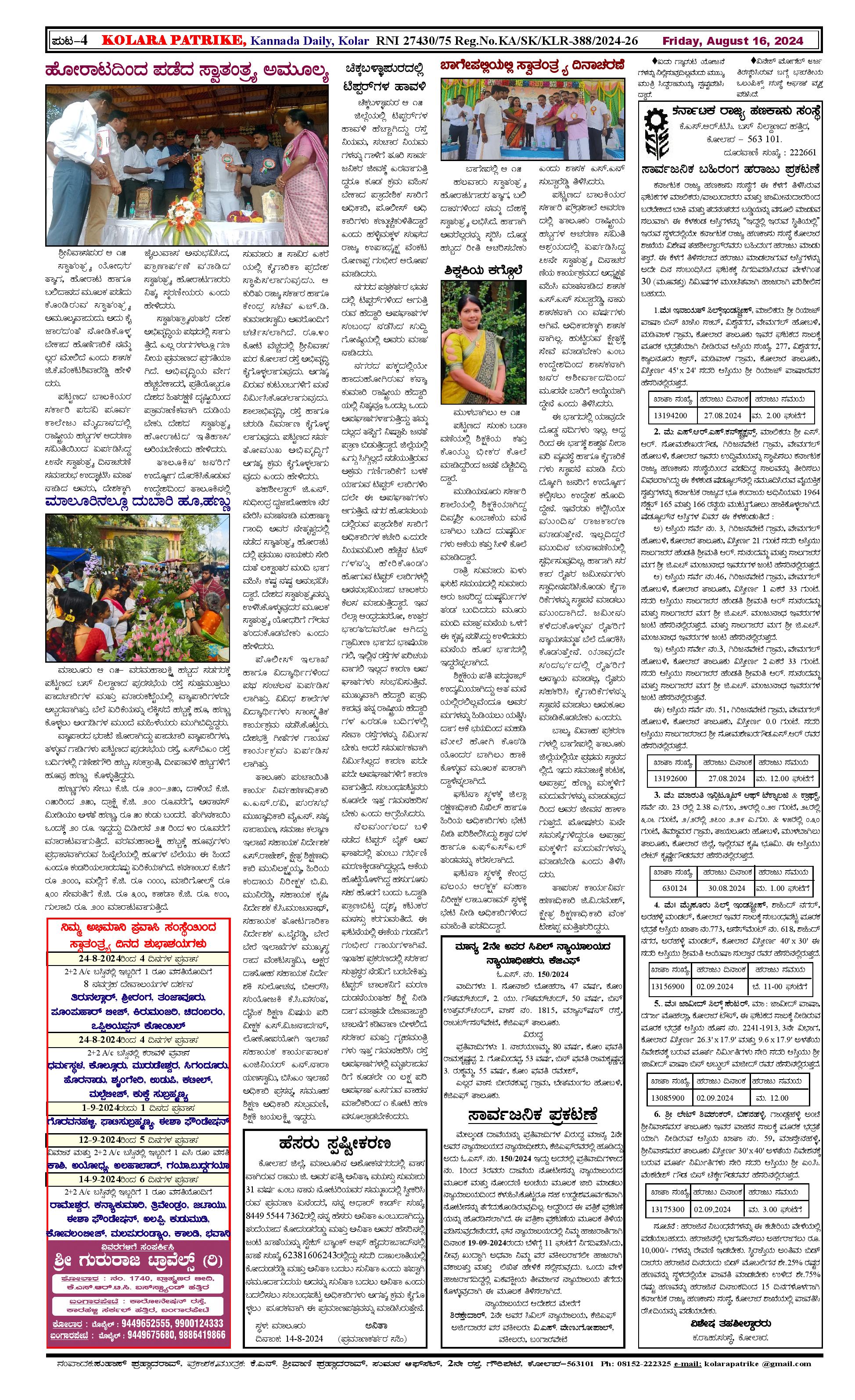 16 ಆಗಸ್ಟ್ 2024 Page: 4 August 16, 2024 << First << 4 >> Last >> Page 1Page 2Page 3Page 4 × 16 ಆಗಸ್ಟ್ 2024 page-1page-2page-3page-4 << First << 4 >> Last >> page-1page-2page-3page-4 page-4