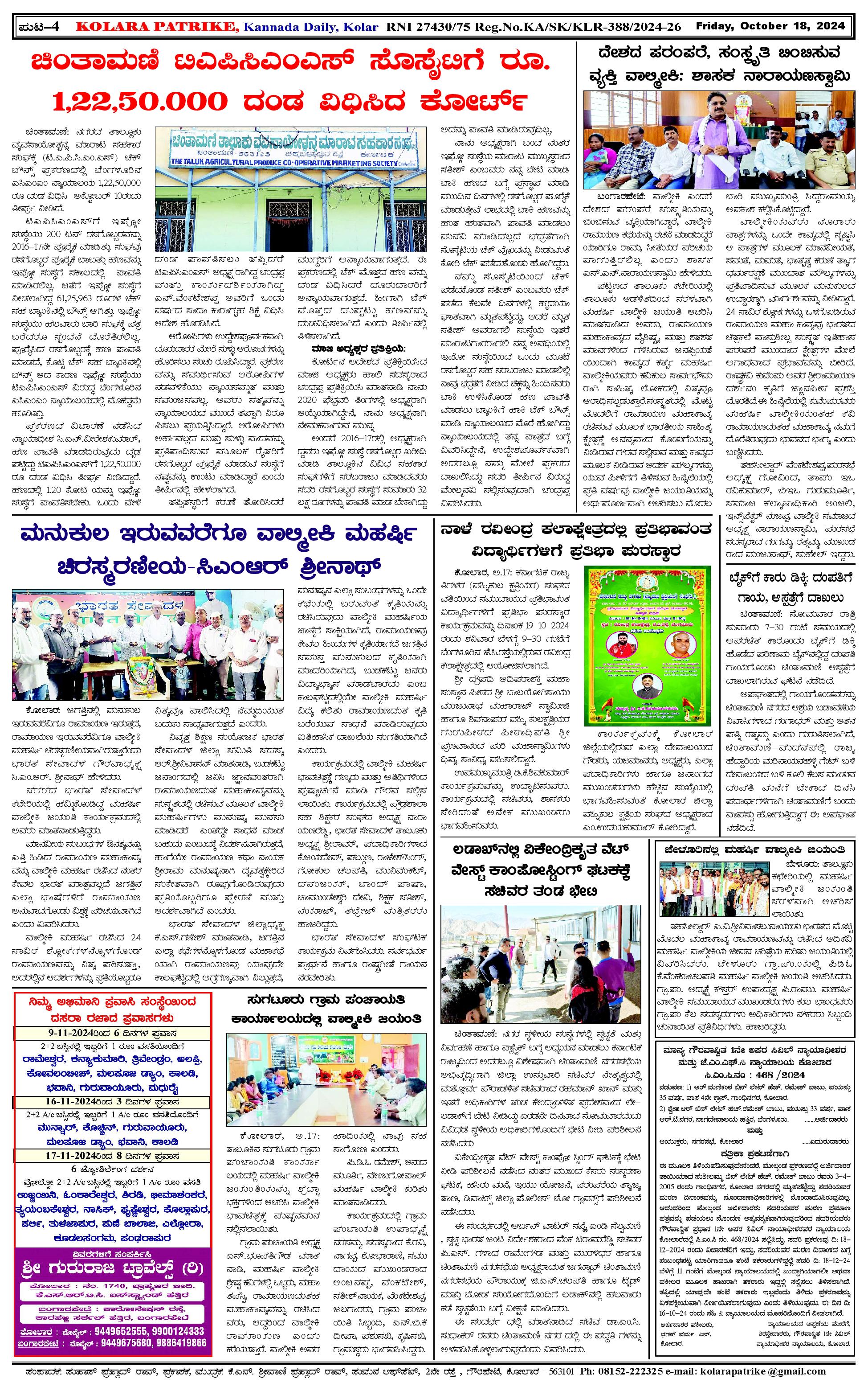 18 ಅಕ್ಟೋಬರ್ 2024 Page: 4 October 18, 2024 << First << 4 >> Last >> Page 1Page 2Page 3Page 4 × 18 ಅಕ್ಟೋಬರ್ 2024 page-1page-2page-3page-4 << First << 4 >> Last >> page-1page-2page-3page-4 page-4