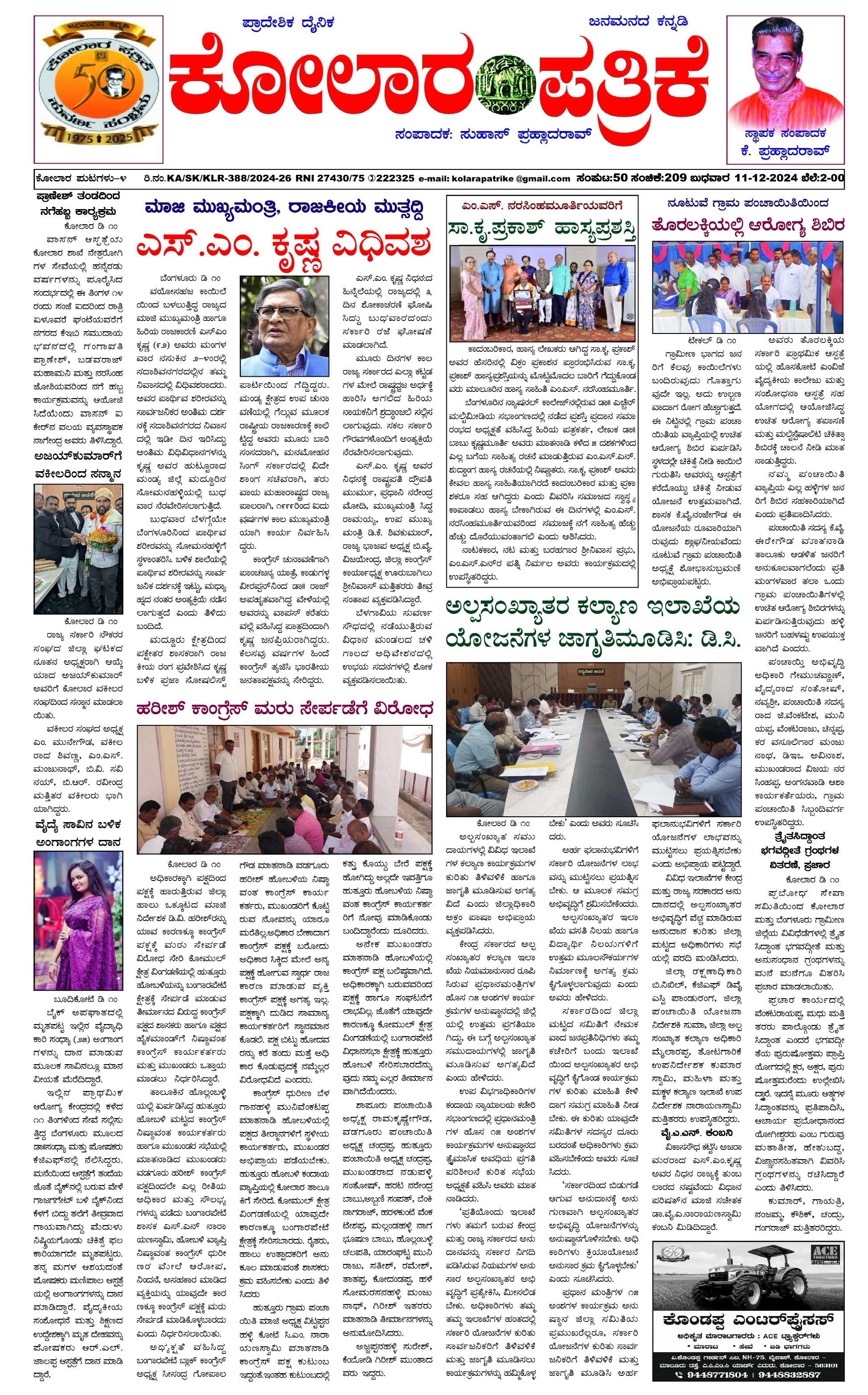 11 ಡಿಸೆಂಬರ್ 2024 December 11, 2024 << First << 1 >> Last >> Page 1Page 2Page 3Page 4 × 11 ಡಿಸೆಂಬರ್ 2024 page-1page-2page-3page-4 << First << 1 >> Last >> page-1page-2page-3page-4 page-1