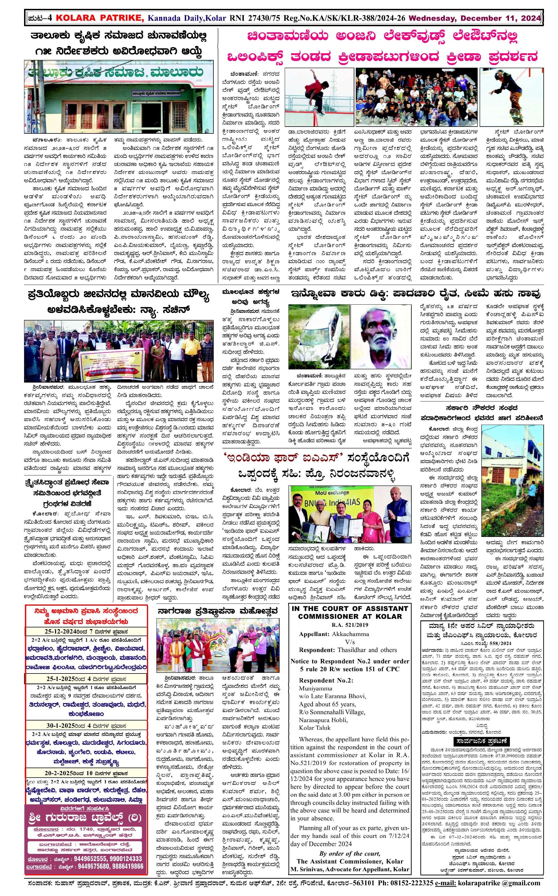 11 ಡಿಸೆಂಬರ್ 2024 Page: 4 December 11, 2024 << First << 4 >> Last >> Page 1Page 2Page 3Page 4 × 11 ಡಿಸೆಂಬರ್ 2024 page-1page-2page-3page-4 << First << 4 >> Last >> page-1page-2page-3page-4 page-4