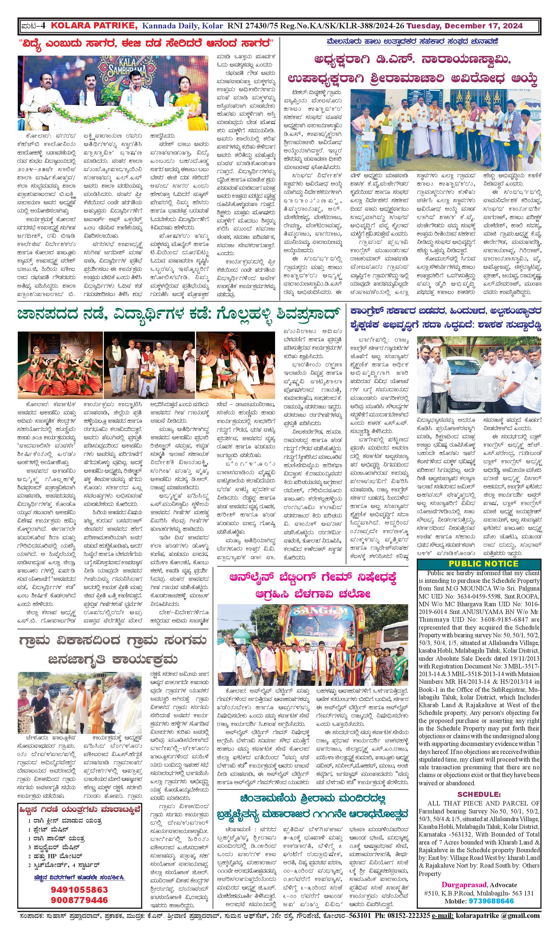 17 ಡಿಸೆಂಬರ್ 2024 Page: 4 December 17, 2024 << First << 4 >> Last >> Page 1Page 2Page 3Page 4 × 17 ಡಿಸೆಂಬರ್ 2024 page-1page-2page-3page-4 << First << 4 >> Last >> page-1page-2page-3page-4 page-4