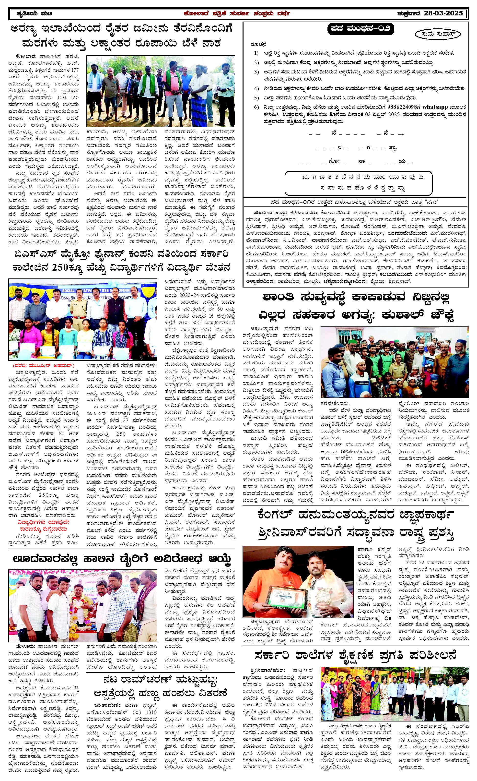 28 ಮಾರ್ಚ್ 2025 Page: 3 March 28, 2025 << First << 3 >> Last >> Page 1Page 2Page 3Page 4 × 28 ಮಾರ್ಚ್ 2025 page-1page-2page-3page-4 << First << 3 >> Last >> page-1page-2page-3page-4 page-3