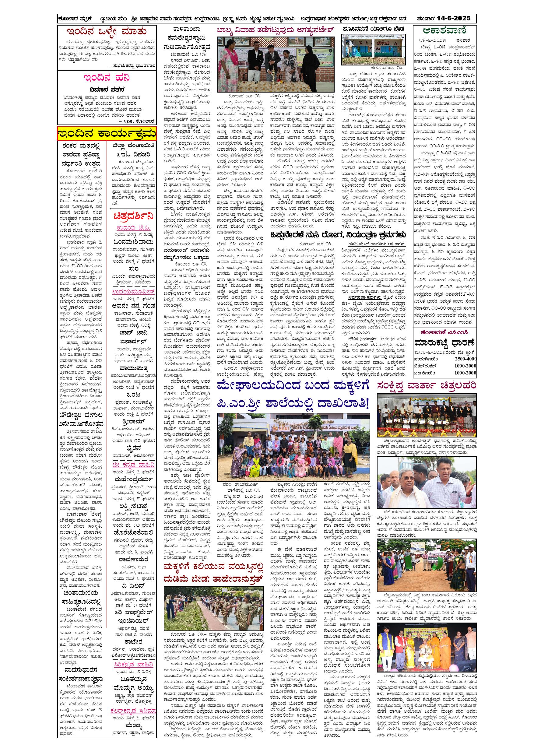 14 ಜೂನ್ 2025 Page: 2 June 14, 2025 << First << 2 >> Last >> Page 1Page 2Page 3Page 4 × 14 ಜೂನ್ 2025 1234 << First << 2 >> Last >> 1234 2