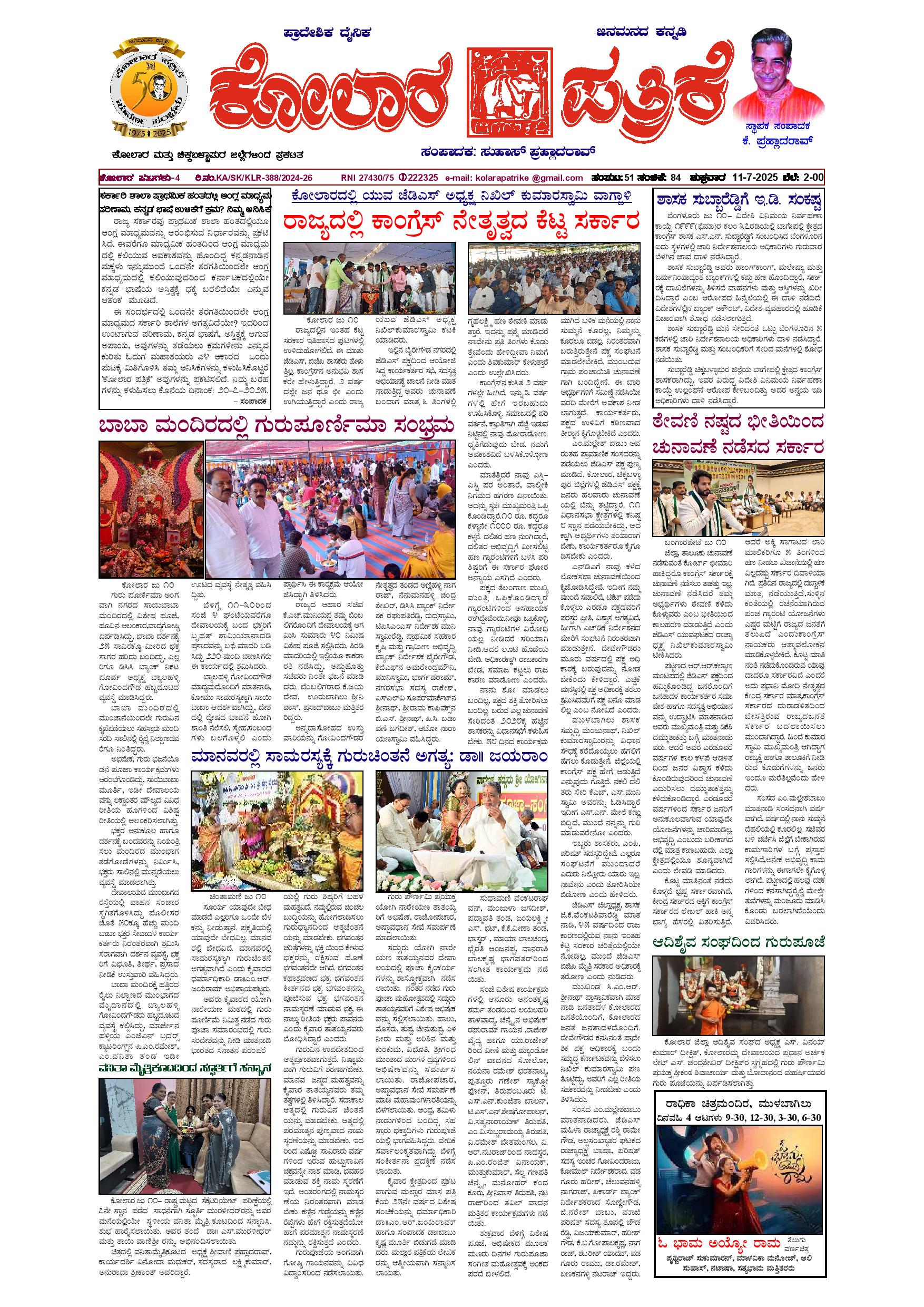 11 ಜುಲೈ 2025 July 11, 2025 << First << 1 >> Last >> Page 1Page 2Page 3Page 4 × 11 ಜುಲೈ 2025 page-1page-2page-3page-4 << First << 1 >> Last >> page-1page-2page-3page-4 page-1