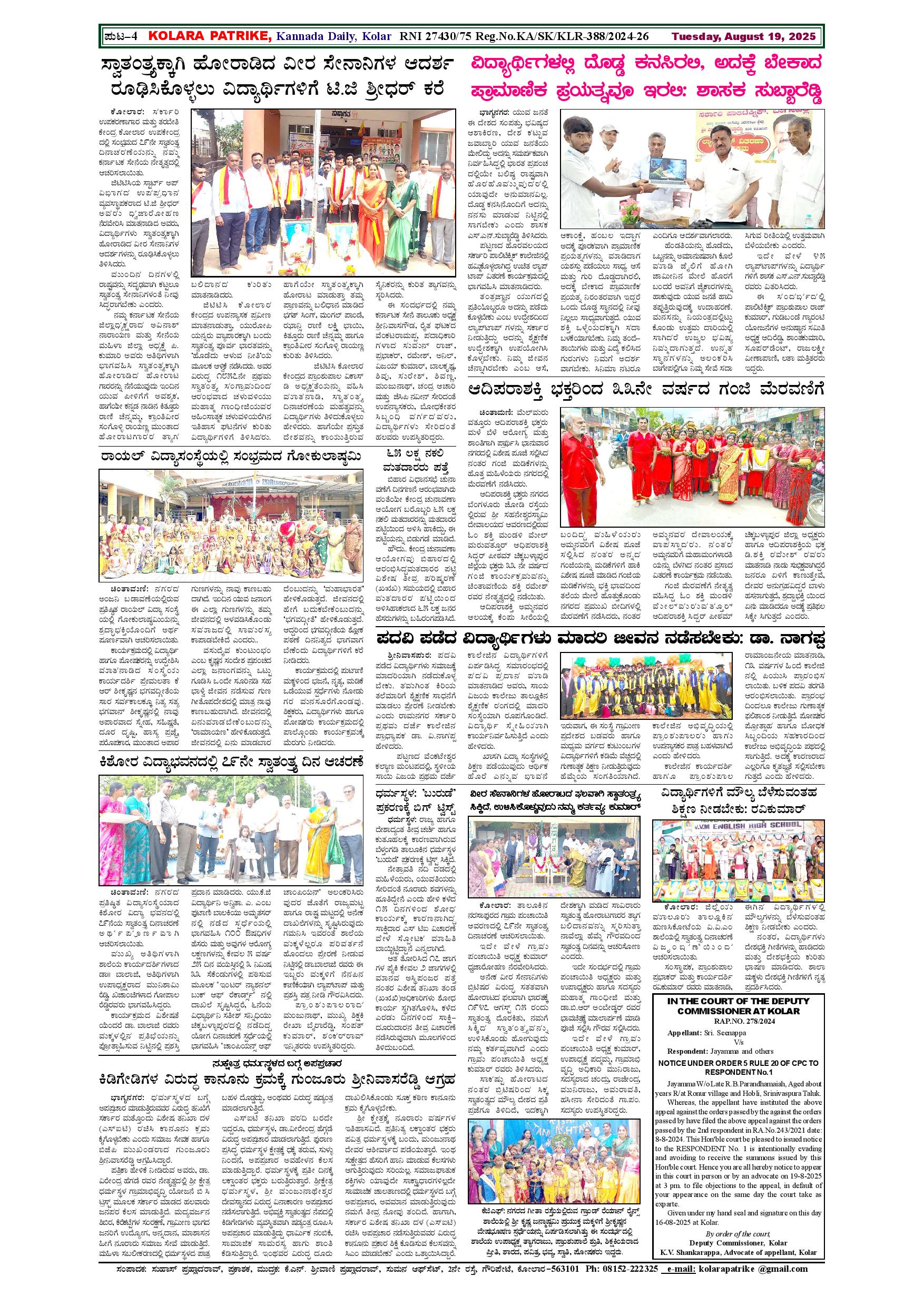 19 ಆಗಸ್ಟ್ 2025 Page: 4 August 19, 2025 << First << 4 >> Last >> Page 1Page 2Page 3Page 4 × 19 ಆಗಸ್ಟ್ 2025 page-1page-2page-3page-4 << First << 4 >> Last >> page-1page-2page-3page-4 page-4