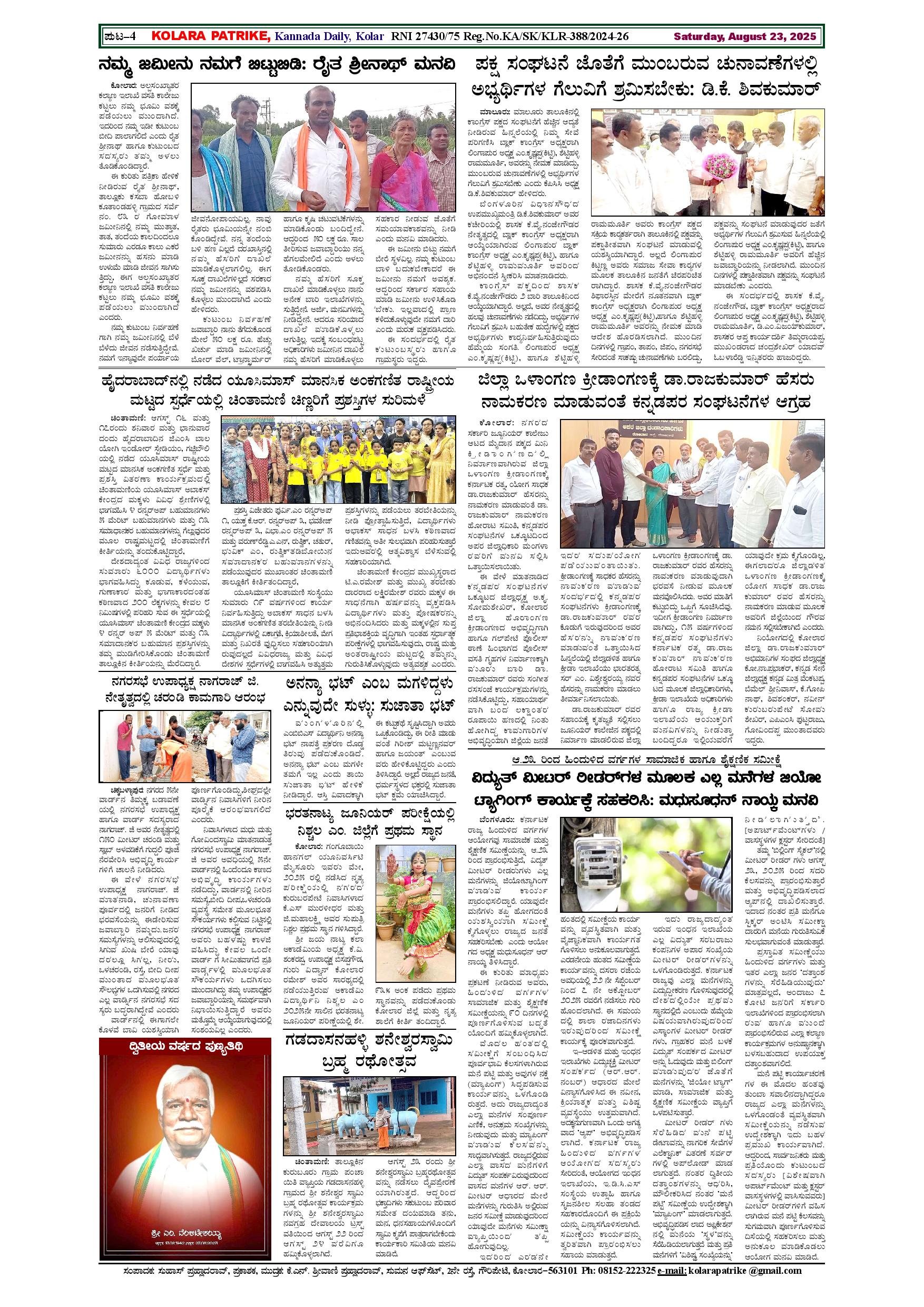 23 ಆಗಸ್ಟ್ 2025 Page: 4 August 23, 2025 << First << 4 >> Last >> Page 1Page 2Page 3Page 4 × 23 ಆಗಸ್ಟ್ 2025 page-1page-2page-3page-4 << First << 4 >> Last >> page-1page-2page-3page-4 page-4
