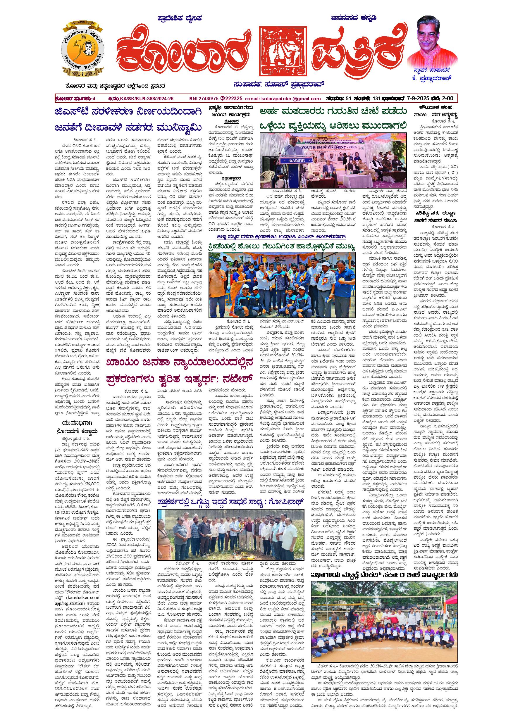 07 ಸೆಪ್ಟೆಂಬರ್ 2025 September 07, 2025 << First << 1 >> Last >> Page 1Page 2Page 3Page 4 × 07 ಸೆಪ್ಟೆಂಬರ್ 2025 page-1page-2page-3page-4 << First << 1 >> Last >> page-1page-2page-3page-4 page-1