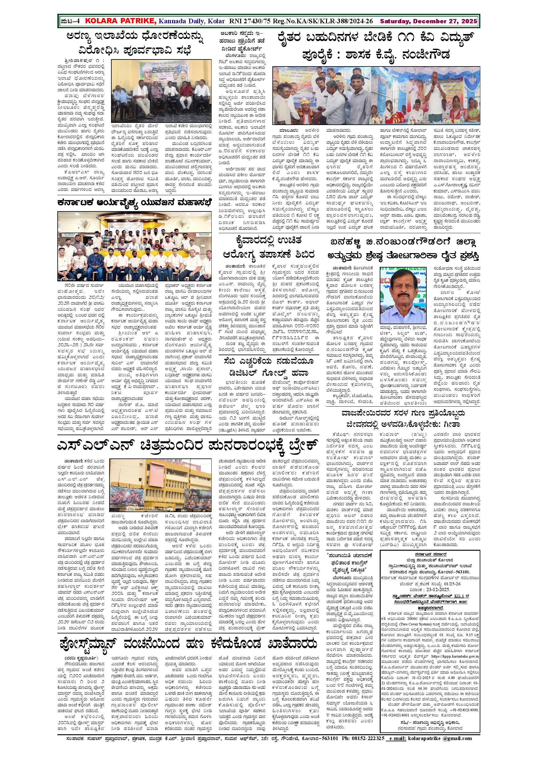 27 ಡಿಸೆಂಬರ್ 2025 Page: 4 December 27, 2025 << First << 4 >> Last >> Page 1Page 2Page 3Page 4 × 27 ಡಿಸೆಂಬರ್ 2025 DEC 27th (All 4 PAGES)-page-001DEC 27th (All 4 PAGES)-page-002DEC 27th (All 4 PAGES)-page-003DEC 27th (All 4 PAGES)-page-004 << First << 4 >> Last >> DEC 27th (All 4 PAGES)-page-001DEC 27th (All 4 PAGES)-page-002DEC 27th (All 4 PAGES)-page-003DEC 27th (All 4 PAGES)-page-004 DEC 27th (All 4 PAGES)-page-004
